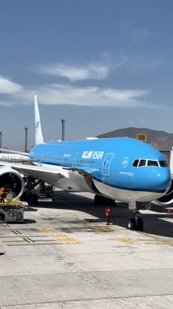 Para nuestra experiencia entre Buenos Aires y Santiago, KLM operó la ruta con un Boeing 777-200ER, un avión de fuselaje ancho pensado para largas distancias, pero que en este tramo ofrece claras ventajas frente a los aviones de pasillo único habituales en Sudamérica.